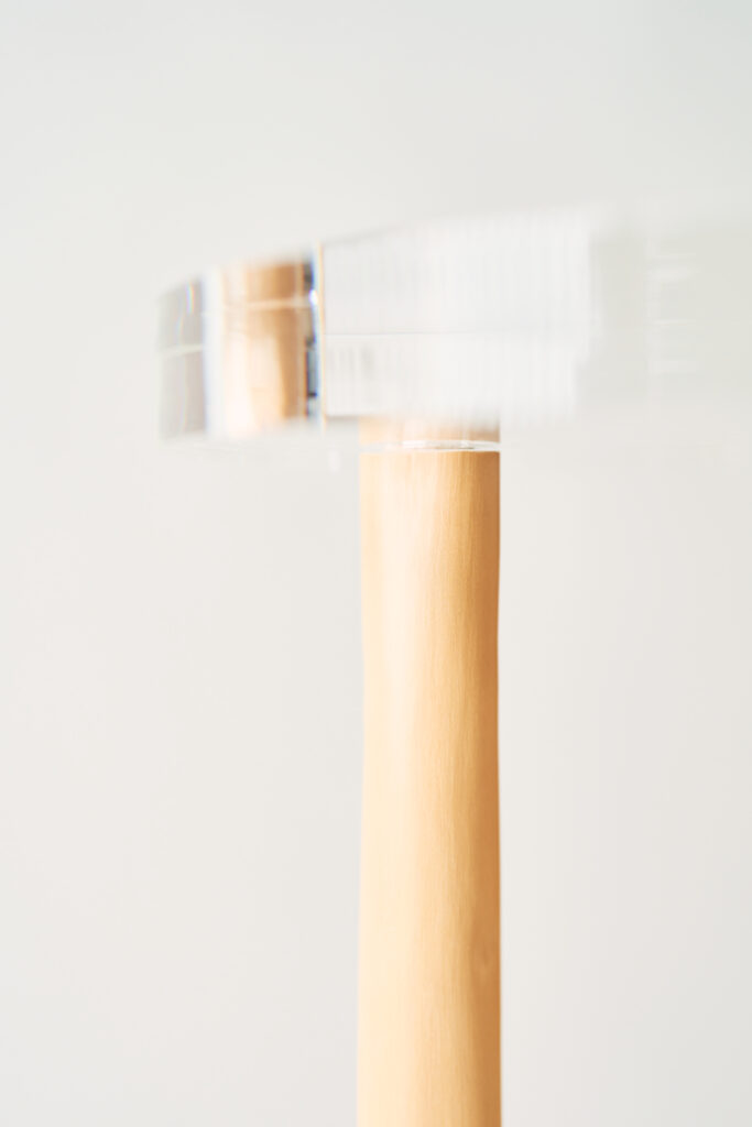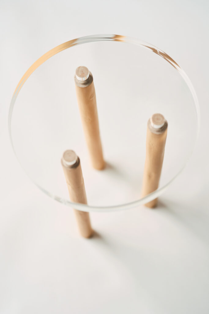 天板は、脚と同じ30mmのアクリルとし、ほぞ組、木殺しではめ込んでいる。